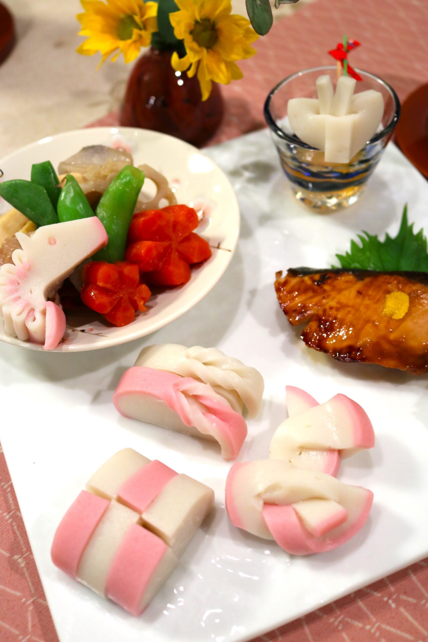 今回は久しぶりに教室にお越しいただいた生徒さん、今月2回目の生徒さん、お二人にお越しいただいてキンパにチャレンジ。ニンジンと菜の花でそれぞれナムルを作り、牛肉を甘じょっぱく炒め、定番のカニカマ、たくあんをを準備して、スライスチーズものせて巻き巻きしていただきました。皆様、海苔巻き初心者ですが、上手に巻くことが出来ました!最後に海苔にごま油を塗って塩を振り、切り方のコツも復習して、キレイにカット。器に思い思いに並べてみたものの、生徒さんが「ちょっと違う…」と感じた部分は少し手直しさせていただきまして、チゲ風スープとともに、写真をパチリです。